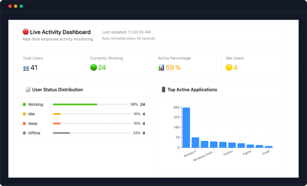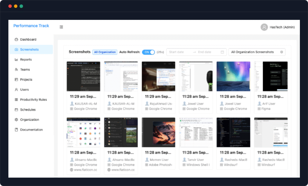 Time Tracker captures work activity with automated screenshots, intelligent productivity scoring, and real-time insights—helping teams work smarter across Windows and Mac.